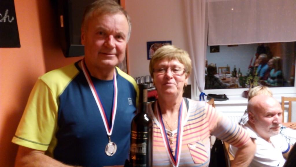 a vítězové se šampaňským Ilonka s Mirkem